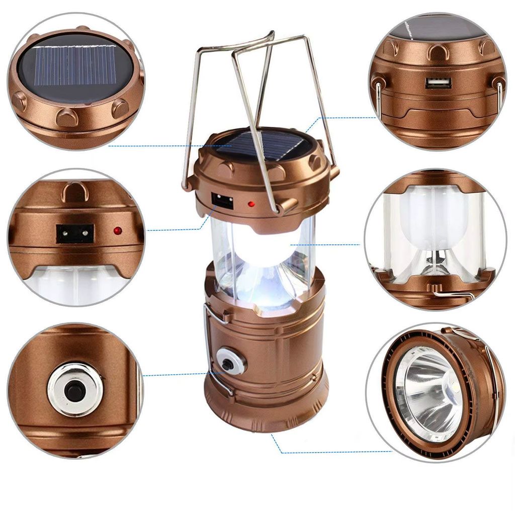 Hot Selling Solar Power Rechargeable 6 LED Pop up Camping Lantern Outdoor Portable Camping Lighting
