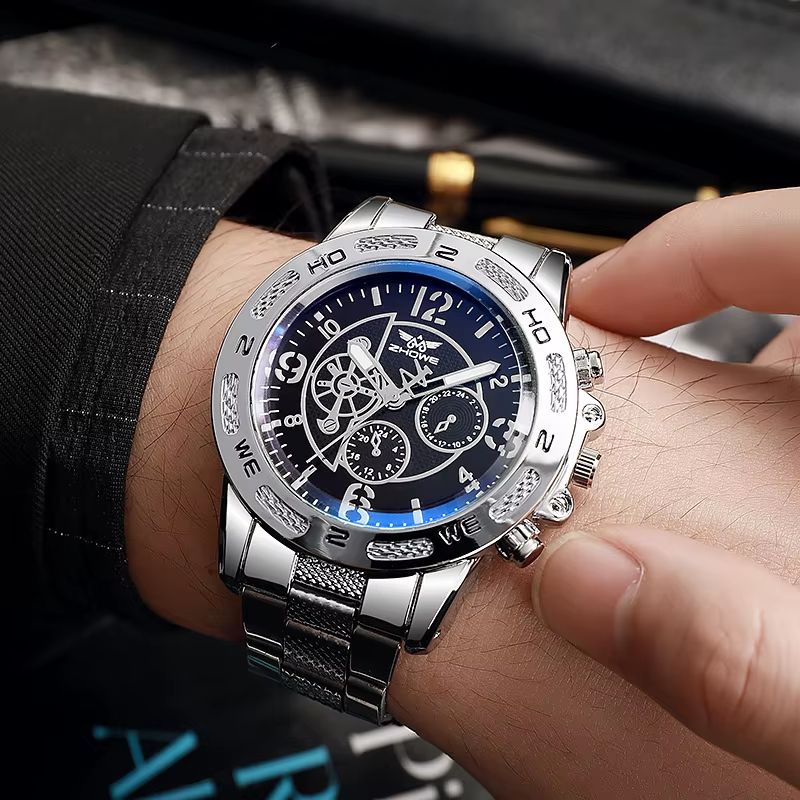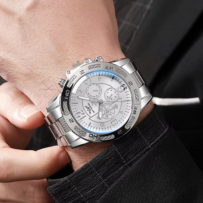 Set 6 Luxury Mens Watches Business Sports Full Steel Wristwatches 20mm Silicone Band Quartz Movement Glass Dial Boxed Male Clock